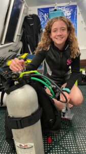 Riley is currently working on her NAUI Rescue Diver course. When asked about her next diving goals, she smiled wide and said, โI love all of it! I definitely want to be an AAUS Scientific Diver, work on Nitrox, and explore different gearโI want to learn to use a full face mask, can I do that next?ย I want to be a NAUI Dive Instructor, too, because I really like when I share what I can do and have learned with the newer students. I realized that I like teaching and I know that I really know something when I can show other kids how to do it.โ