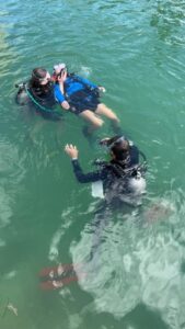 Team-learning and diving for science as a member of a high-functioning team requires participants to feel safe speaking up about struggles they experience. Because DiveN2Life utilizes a team-based instructional and learning model, students learn to identify how they are feeling and eventually develop understandings about why they are having those fears or feelings. Students and teachers are paired together based on individual needs, as well as teaching and learning styles. Fear of being underwater is not a new challenge at DiveN2Life; Marsella Munoz (NAUI #63530) experienced similar challenges when she joined the program at age 12, back in 2016. She stuck with it and has been a member of the team ever since, completing her NAUI Instructor certification in 2022 with DiveN2Life Course Director Inman Campbell (NAUI #54277). Even though she was born in Key West and lived there her entire life, she was terrified of the ocean. Marsella recognized her younger self in Riley and knew she wanted to be on her Open Water Diver team.