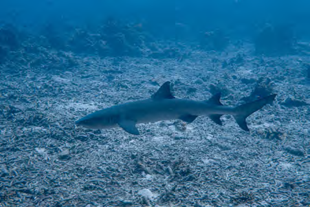 When photographing larger marine animals such as dolphins, turtles, and these whitetip reef sharks, it is often beneficial to compose your shots with the subject(s) surrounded by properly exposed blue or green water instead of against a background of the reef.