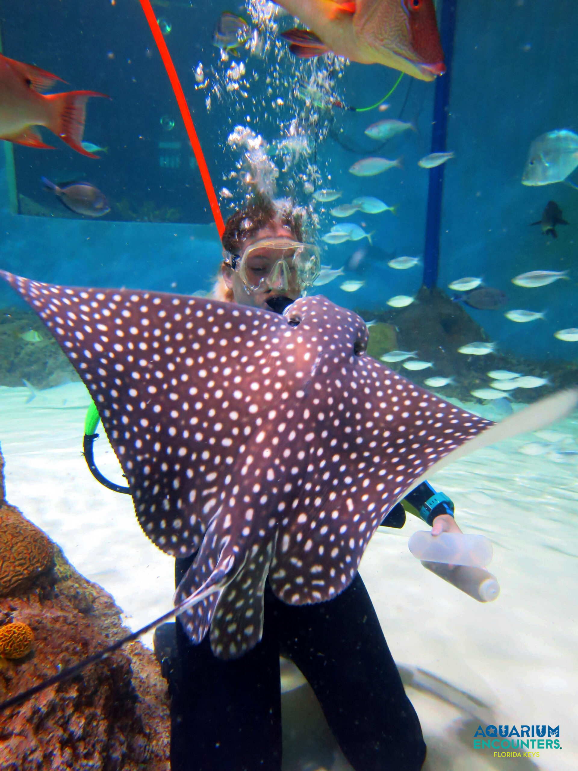 ยฉ Aquarium Encounters Eagle Ray DivingThis camp is our next step in bridging the gap. It provides students ages 10 through 17 with a half-week-long day camp that includes dives in our coral reef tank, our open-water lagoon and, of course, a half-day out on the third-largest barrier reef system in the world. As aquarists, marine biologists and dive professionals, we all have a strong passion for our ocean and the wildlife that calls it home. We all want to ensure that the next generation shares that same passion and takes steps to conserve the largest and most diverse ecosystem on our planet. What better way to hook future divers than to equip them with a certification that allows them to explore the ocean we love and with experiences that give them a taste of how magnificent the ocean can be? The Senegalese conservationist Baba Dioum famously said, โIn the end, we will conserve only what we love, we will love only what we understand, and we will understand only what we have been taught.โ Here at Florida Keys Aquarium Encounters, we believe that teaching through experience is the fastest and most powerful way to have our guests fall in love with the ocean.