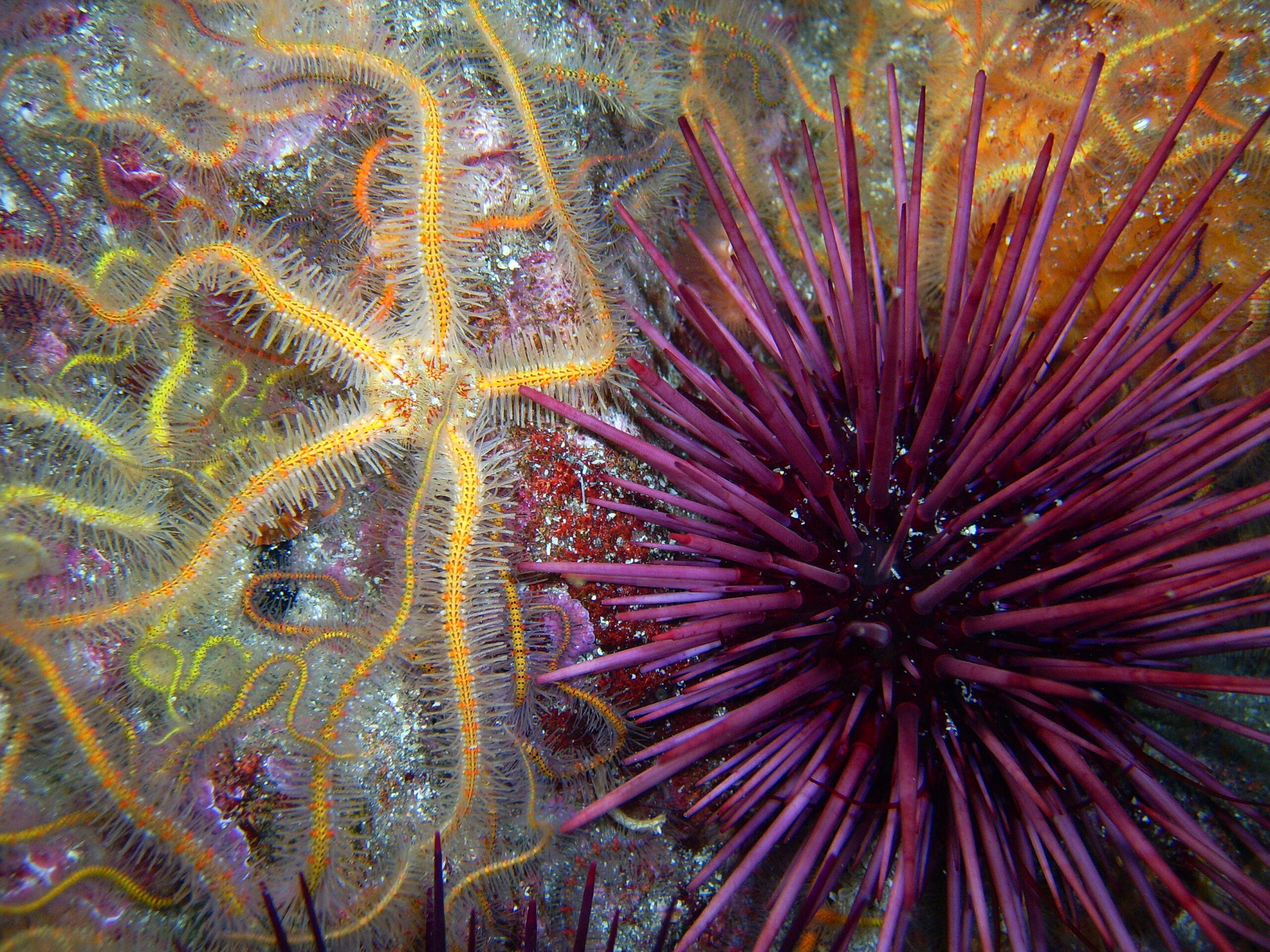 The source of this destruction can be traced to a densovirus, made more virulent by warm ocean waters, that struck ~ 2013 and nearly wiped-out the starfish and sea star populations along the North American Pacific coast.ย  The sunflower sea star (pycnopodia helianthoides) was hit particularly hard by the virus and is now believed to be nearly extirpated from the California coastline.ย  In northern California, the pycnopodia was the main predator of the purple urchin.ย ย  And with that predator gone, the purple sea urchin population exploded to over 60 times their historical densities.