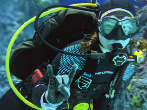 Sarah’s journey into the depths began with a family influence, her older brother’s diving adventures, and her determined spirit to keep pace with her siblings. Her diving experience, which spans over 11 years, is a testament to her passion and resilience. As she worked her way up to divemaster and now sets her sights on becoming an instructor, Sarah exemplifies the very essence of growth and perseverance that NAUI stands for.