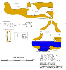The time that we could not spend diving, we utilized for mapping the air-filled parts of the descent area. Josef and Martin took care of the measurements, and Josef created the map.