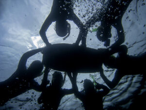 I have found that this โHello Oceanโ skill can be critical when introducing new divers to the underwater environment. I remember a young girl recalling in a later course her experience with this skill and saying it was like bullying. However, she continued that it got her ready for other skills, and she was confident she could handle them.