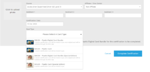 - Select student to certify, select Pat Tillman card type