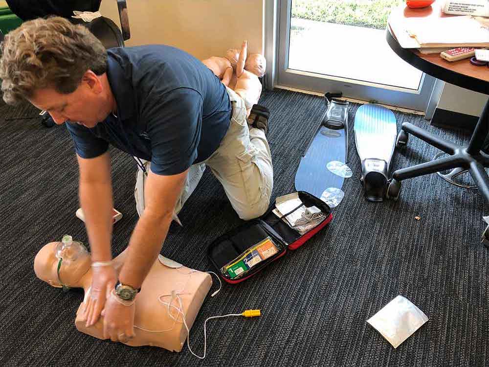 Administered by NAUI’s Training Manager, Jim Gunderson, the headquarter’s FAIW spanned a two-day period. The first day focused on First Aid (and related) skills with the second day devoted to the methodology of teaching and administering these courses.