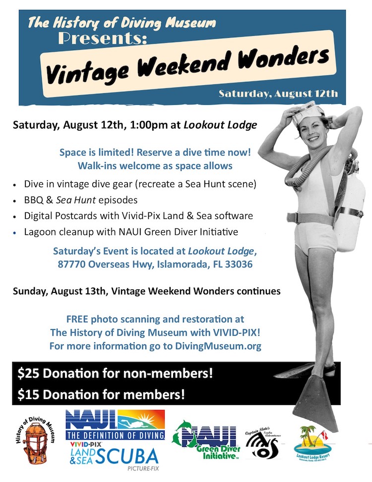 To participate or get involved in Vintage Weekend Wonders, visit https://www.naui.org/events/history-of-diving-museum-vintage-weekend-wonders. For more information, contact gro.i1761610521uan@g1761610521nitek1761610521ram1761610521.