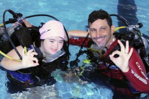 The conference’s adaptive diving workshop, the fruit of a long partnership between the NAUI Brazil office and PEAMA (Adaptive Sports and Activities Program), gave our NAUI Instructors an incredible hands-on experience of working with people with specific special needs (autism, Down syndrome, amputees, wheelchair users, blind) for an amazing diving experience. PEAMA, which was developed in Jundiaรญ, the city that also houses the NAUI Brazil office, is one of the largest and best such programs in Brazil, with more than 350 persons who participate in many different types of sports activities.