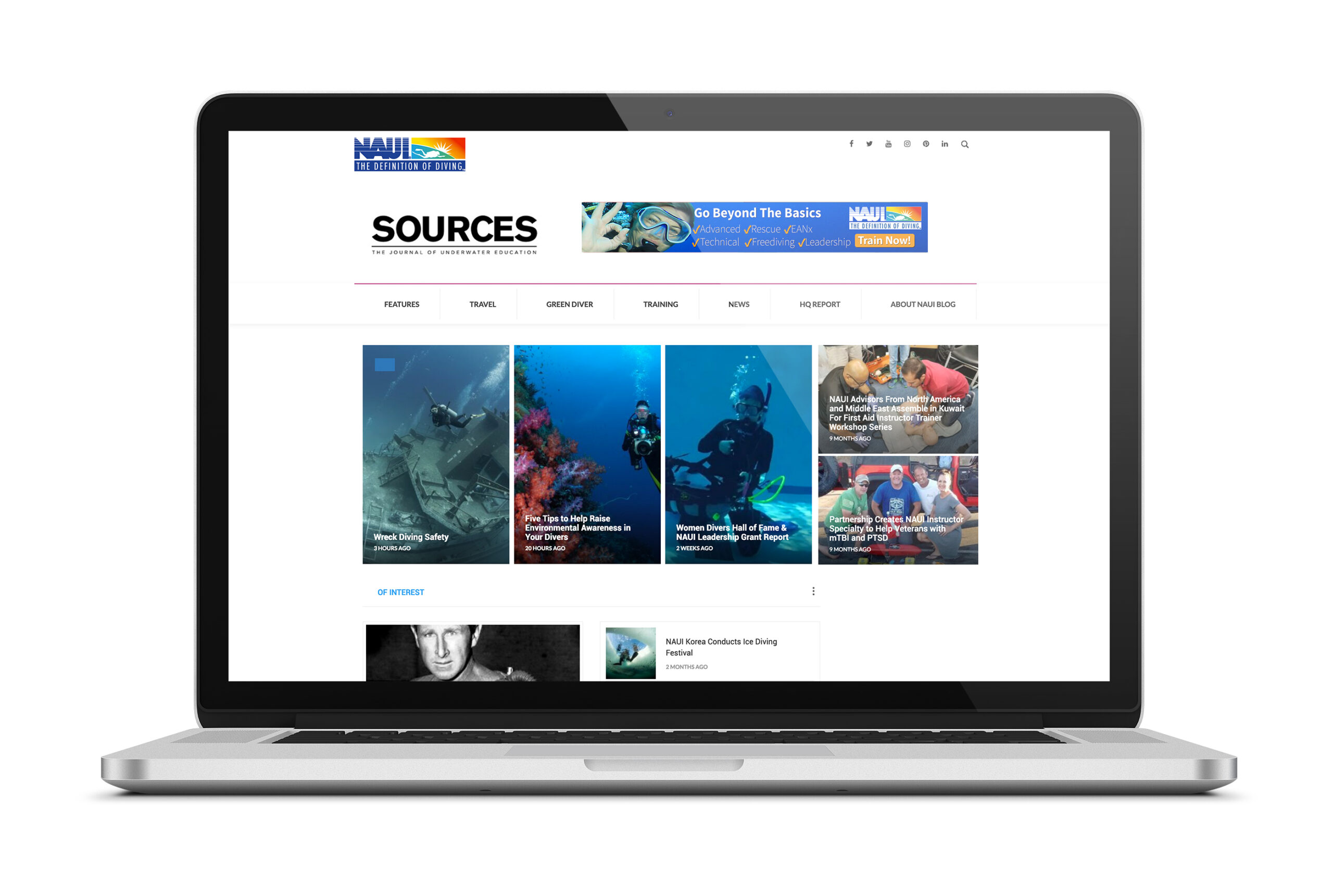 The Sources overhaul comes from a detailed marketing plan designed to increase awareness and reach from a member-based audience to a public viewership accessible from all platforms (desktop, tablet, smartphone) directly from NAUIโs website homepage at www.naui.org.