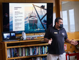 The extremely knowledgeable and versatile crew conducted lectures such as โCage Diving 101โ and โMarine Life 101.โ These superb presentations helped guests understand the biology and behavior of marine life, especially the great white sharks. The only shark species seen around Guadalupe are the great white sharks. It is, however, not uncommon to see turtles, schools of yellow fin tuna and pinnipeds (sea lions and elephant seals) in Guadalupe waters.