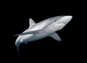 โWhat about sharks?โ This is another commonly asked question and somewhat of an elephant in the room. The truth is, there are a variety of sharks, including the silky shark pictured here, that roam the open sea. Depending on the location and the given night, sometimes sharks come in to take a look around. But, just like diving during the day, it is usually peopleโs imaginations that cause any issues.