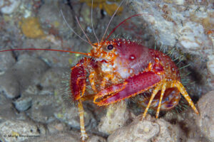 I used this pre-focus, dim light technique to create the image of the skittish red reef lobster