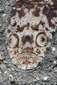 I think itโs fair to say that a lot of nighttime photography takes place with relatively small subjects from close range while on or very near the sea floor. In that scenario, a common mistake involves pointing your strobe(s) or video light(s) at too severe of a downward angle. This results in the creation of distracting, overexposed hotspots in the foreground of your photographs.