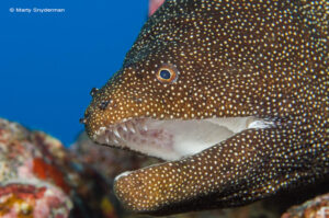 when trying to expose a subject that is difficult to get close to, and when intending to create a water background that is not black, as was the case when I made this photograph of a whitemouth moray eel in Kona