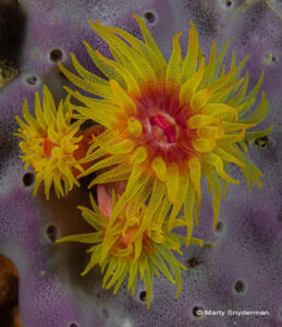One of the great rewards of night photography is getting the opportunity to photograph a lot of creatures we donโt usually encounter or get a good look at during daytime dives. Examples include feeding coral polyps with their tentacles extended seen here, slipper lobsters, eels, snails, and myriad other creatures that emerge from the sandy bottom on the sea floor.