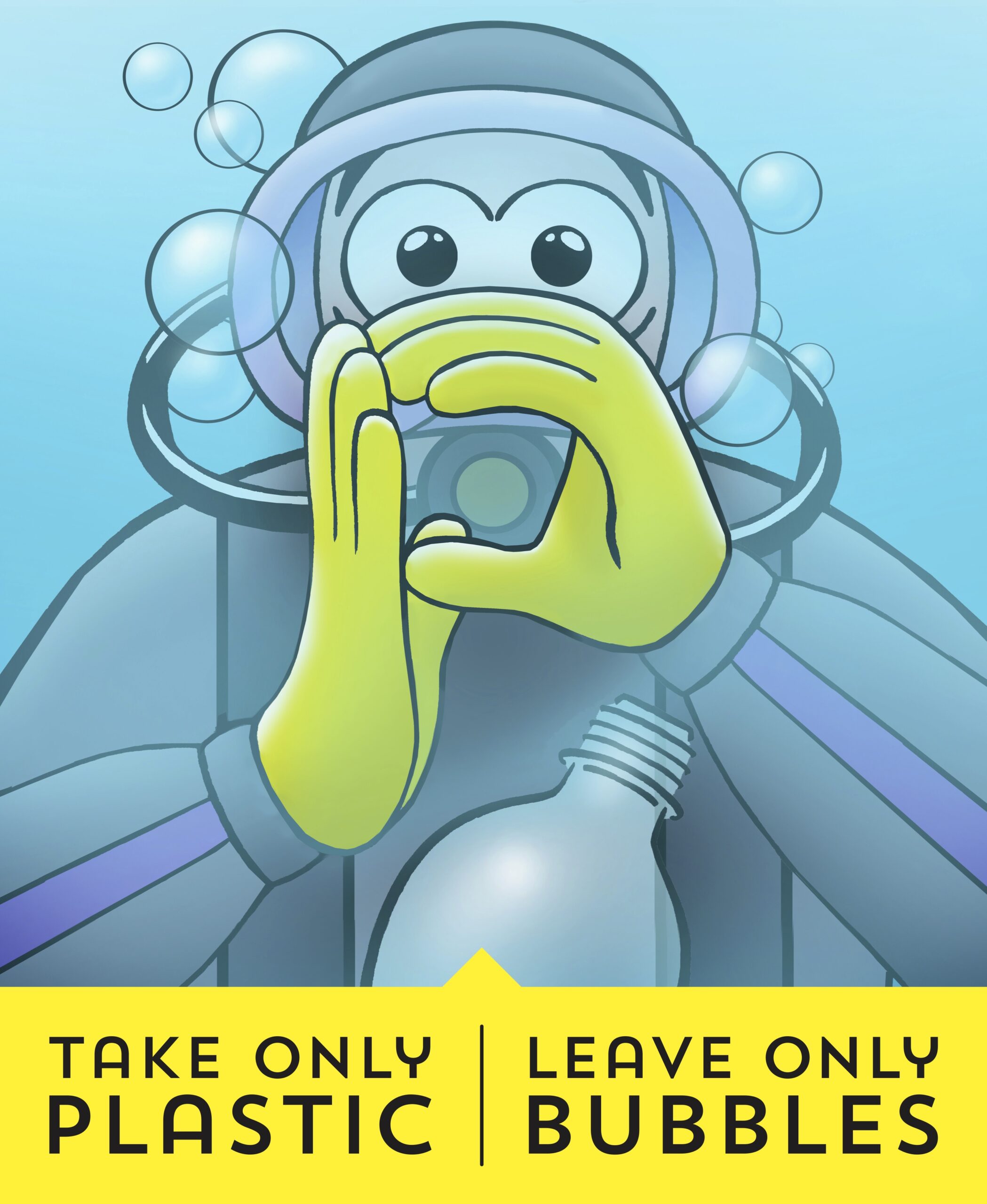 • Download the hand signal image from the Plastic Soup Foundation website and share it with diving buddies and on social media. Use the hashtag #PforPlastic.