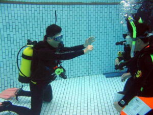 I again monitor student progress on the eLearning as before and discuss what issues they may have had with any quiz questions. I then discuss dive travel and give them a โproctored examโ in addition to the eLearning final exam. I use the eLearning exam as a pre-test. This session is a bit longer because of the exam, but they usually finish rather quickly. I finish the course with an hour and a half- to two-hour pool session.